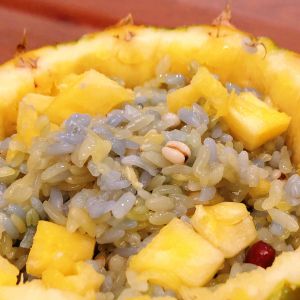 糯米和凤梨丁拌在一起,撒点白砂糖。也可加入一点点凤梨汁。