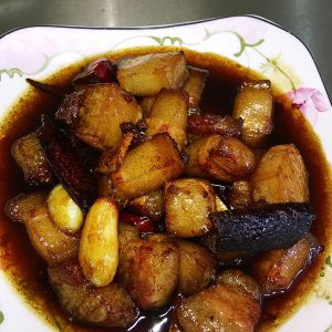 五花肉洗净,切成块,把备好的生姜、大蒜、红椒、花椒、桂皮、料酒、生抽、老抽、醋、盐放进去与肉一起腌制一个小时;