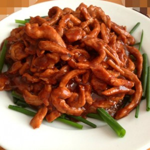 小火余油中加入甜面酱,料酒,少量生抽,鸡精,少量糖。炒匀。倒入肉丝翻炒上色。收汁。盛盘。