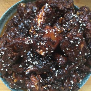 大火收汁后加鸡精适量,起锅装盘,撒入芝麻,美味立即呈现!