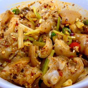 准备蒜,姜,花椒切末,辣椒、葱切小段。芹菜(可有可无)切断用开水烫一下即可