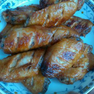 入烤箱200度上下火25分钟,时间自己掌握,(因为每台烤箱的大小温度不同),在烤的途中给鸡翅刷上蜂蜜水,翻面再烤!因为刷上蜂蜜,所以锡纸变焦黑了,请大家忽视,对鸡翅没啥影响的!