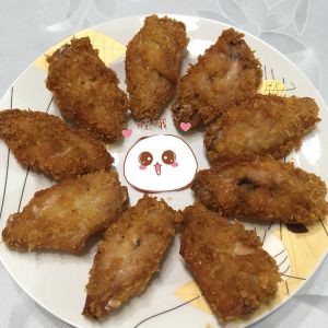 把面包糠倒入一个平底盘里,夹鸡翅去均匀沾上一层面包糠。