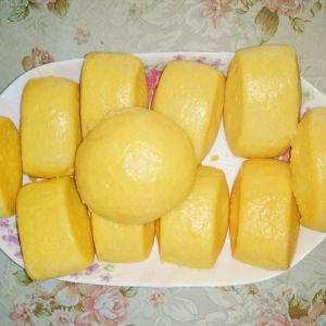 蒸锅加水烧开,馒头大火蒸25分钟,关火3分钟后打开锅盖,香喷喷的玉米面馒头就好了,我这个是面发的不是特别好的。