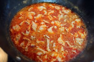 煮至牛肉一片片的都展开,肉质变白即可。