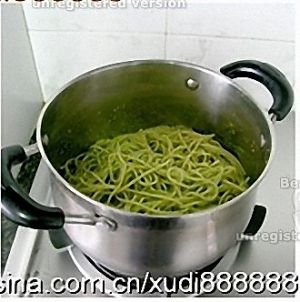 按照包装上的烹煮时间指示烧煮,到时后捞出滤水,加入1勺橄榄油拌匀。按照口味加入适量香菜杏仁蒜泥青酱拌匀即可。