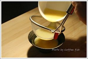 蛋液打散后倒入两倍量的大米汤搅拌均匀,蛋液过筛.