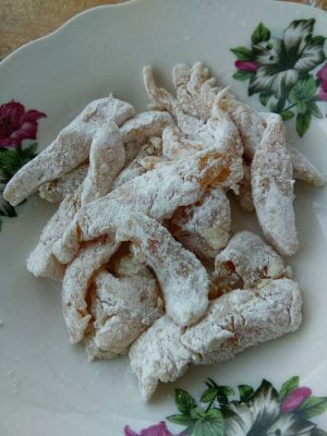 让每个鸡条都粘上淀粉,但不要太厚。如果真的淀粉太多的话就用手把它都抖了抖了。否则炸出来的鸡柳就不就不松软了。