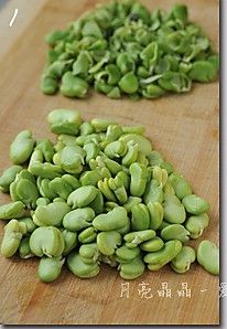 新鲜的蚕豆,剥去表皮,成蚕豆米(这样吃法更嫩,当然不剥皮也是可以的)。