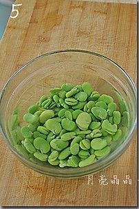 焯好水的蚕豆捞出,过凉水,沥干备用。