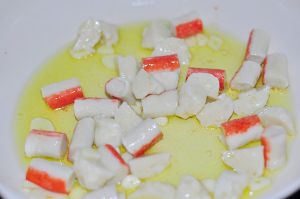 再依次放入鱼丸、蟹棒,炒几下