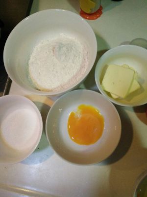 将面粉与糖混合,黄油融化后倒入面粉,用手混合抓匀,搓成颗粒状(黄油可室温回软也可加热回软)
