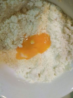 加入蛋黄和水,建议水分次加入,直到能揉成面团即可