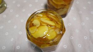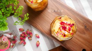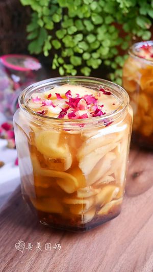 加入蜂蜜,撒上干玫瑰花瓣,腌制三天后可以吃了