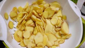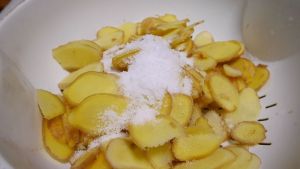 加入盐拌匀腌制二十分钟,目的是去除姜里的辛辣水