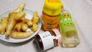 准备好材料,嫩姜不是我们平时做菜的那种,是比较嫩,颜色很淡,有点白白的哈