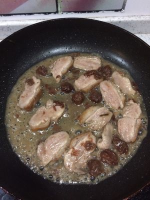 将鸭皮煎焦后,稍稍翻面煎肉肉,后取出片片~我为了省力和入味,直接将片好的鸭肉和熬好的话梅汁一起烧咯~这样鸭肉的话梅香更浓~