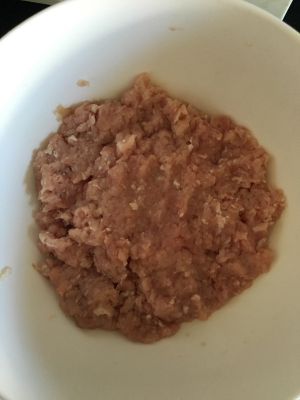 猪肉买回来洗干净剁馅,再加入生姜末一起剁。(可以超市买现成的肉馅,但我总觉得那样的不是很干净,所以还是喜欢自己剁馅)