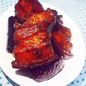 加入水没过五花肉1厘米,小火炖40分钟。炖至肉质软烂、入口即化不油腻