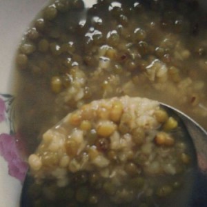 随个人喜好加入适当的白糖(我爱甜食),会有朋友问我会不会太甜,又是冰糖又是白糖的,答案是当然不会!我试过没有加冰糖一起煮的,觉得没什么味道,这样的加法使绿豆汤味道更有层次感