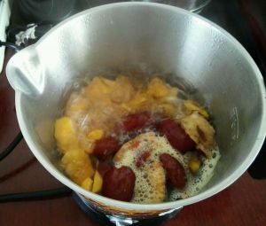 待水沸后,将大枣枸杞红薯一同倒入锅中。(大枣一定去核,为什么我忘记了,我就记得枣核久煮不好)