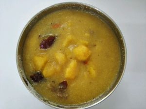 等红薯软了,倒入洗干净的玉米面,再煮五分钟~当当当~出锅啦~不放糖也很甜,因为大枣又香又甜呢
