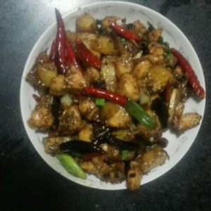 最后放入已经炸好的土豆和鸡肉翻炒出锅。