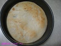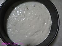 分几次把蛋白糊与面糊混合,切拌均匀。装入模具,振几下