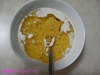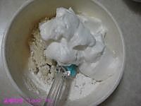 因为面糊很干,所以先取少许蛋白糊到面糊中
