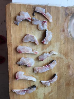 从超市买了两块鳗鱼,先试试手,洗净,晾干水,切成小条
