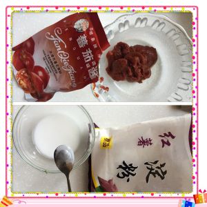 备好番茄酱及淀粉,锅中放油,将番茄酱倒入加水熬匀,加糖、盐,倒入淀粉熬匀,将炸好的鳗鱼倒入锅中连续翻炒