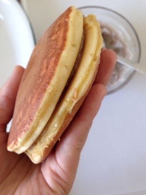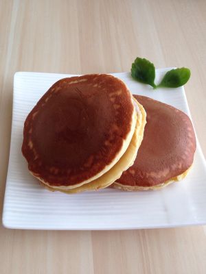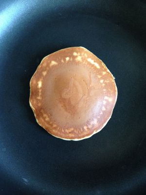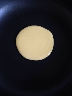 平底锅烧热后转小火,放一勺面糊,待底部变色后翻身。