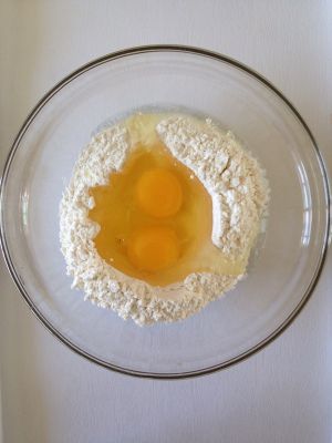 低粉糖粉泡打粉混合,加入鸡蛋。