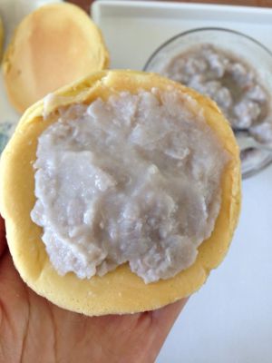 芋艿洗净蒸熟,捣烂成泥,加入白糖,做馅料。