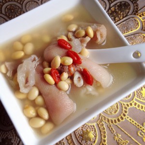 武火烧开后转文火,煲约1.5小时后,加入泡好枸杞。