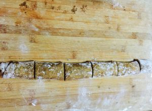 取一小段,左右口捏住,揉圆,收口朝下稍微按扁;
