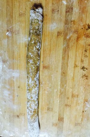 延长边卷,边卷变抻,卷成一个长筒。尽量卷紧些;