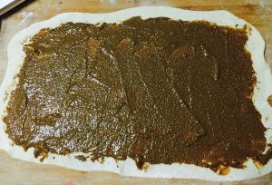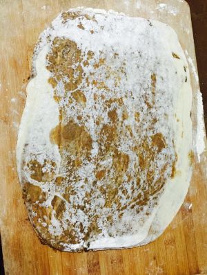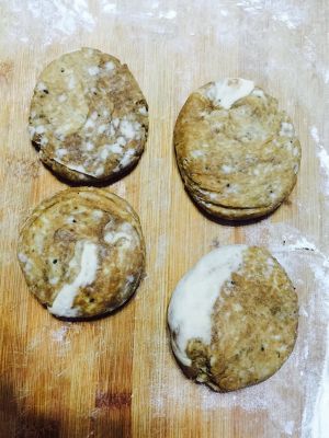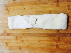 把涂抹芝麻酱的面片先延短边向中间折叠2次,再延长边向中间折叠2次。然后醒20分钟;