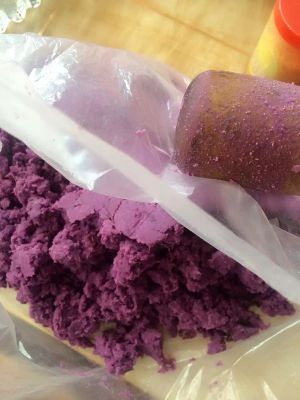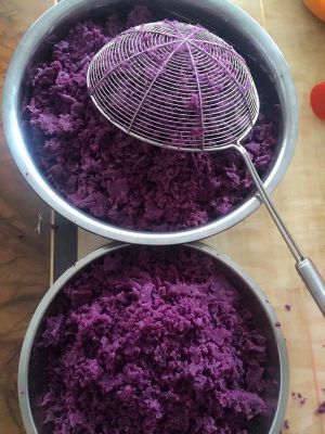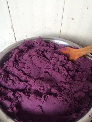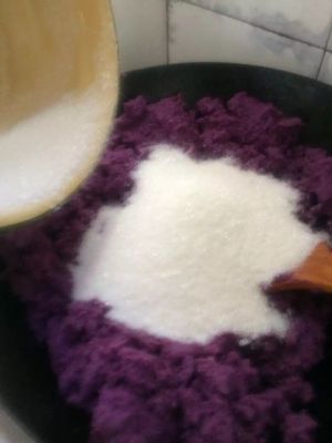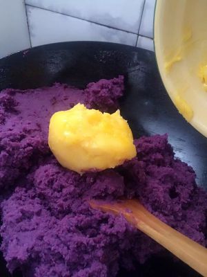 炒锅放玉米油放入薯泥小火翻炒,加入黄油继续翻炒