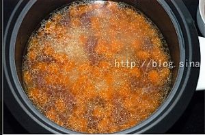 移入电饭煲,加水(跟平时煮饭的水量差不多),按下煮饭键。等电饭煲煮饭键跳起后再焖10分钟即可。