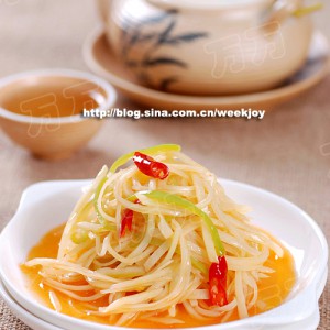(土豆丝放入凉水中要多换几次水,把淀粉都洗掉,这样炒出的土豆丝才脆,清爽不粘)