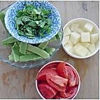 洋葱切块,土豆切块,西红柿切花瓣,大蒜切片
