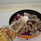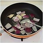 锅内热油,六成热时,放入洋葱、大蒜煸出香味