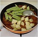 加入土豆和四季豆,加盐、糖、鸡精调味烧至软烂