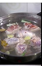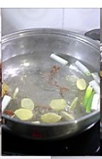 锅中倒入水煮沸,加入葱段姜片,卤肉八宝。