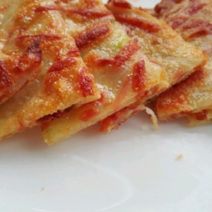 几分钟过后,香喷喷的香葱火腿土豆饼就出锅啦。