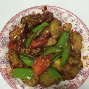 另起锅,少油,放入蒜末,西红柿,番茄酱,青椒小火翻炒。后倒入茄子快速翻炒几下,转大火倒入调汁收汁,出锅