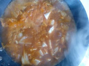 加入开水,煮开放入豆腐开中火煮7,8分钟