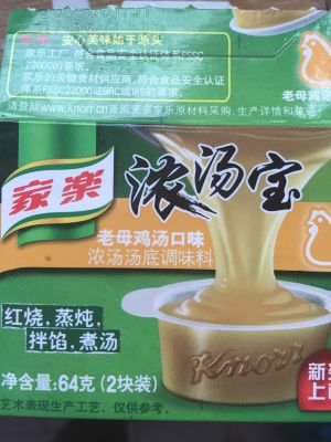 没有高汤可以用这个代替,实在没有,清水也可以,取一块就行,用开水搅拌开,我用了大约300ml