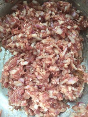 把一个洋葱切碎放入调好的肉馅里搅拌均匀